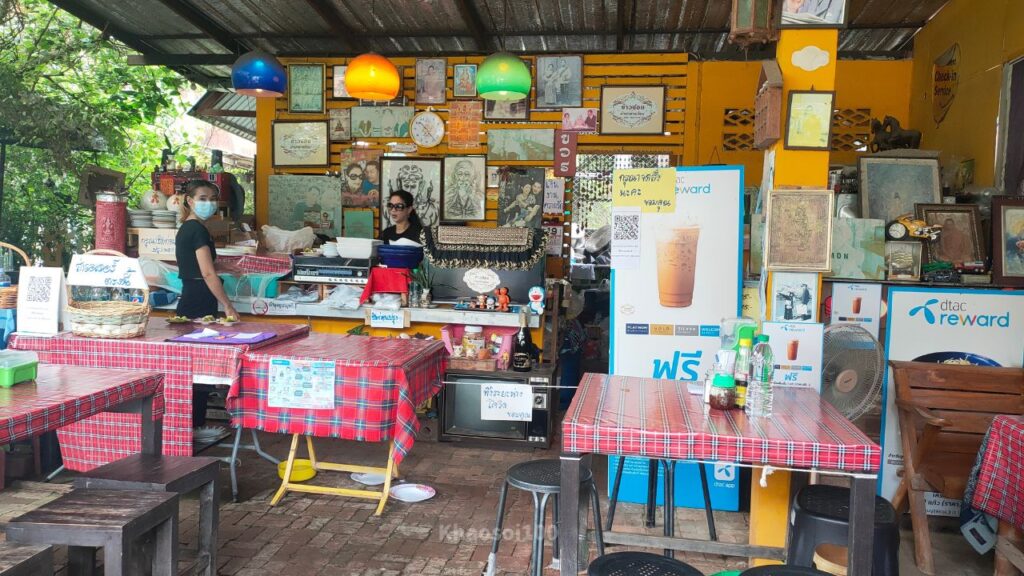 お店はWichai Racha Rdという住宅などがある通りにあります。木が沢山あってボタニカル!ボタニカルな木々に隠れてわかりにくいので、頑張って「ข้าวซอย(カオソーイ)」の文字を探してみてください✨店員のお母さんが話してみたらめっちゃノリ良くて楽しかった♪