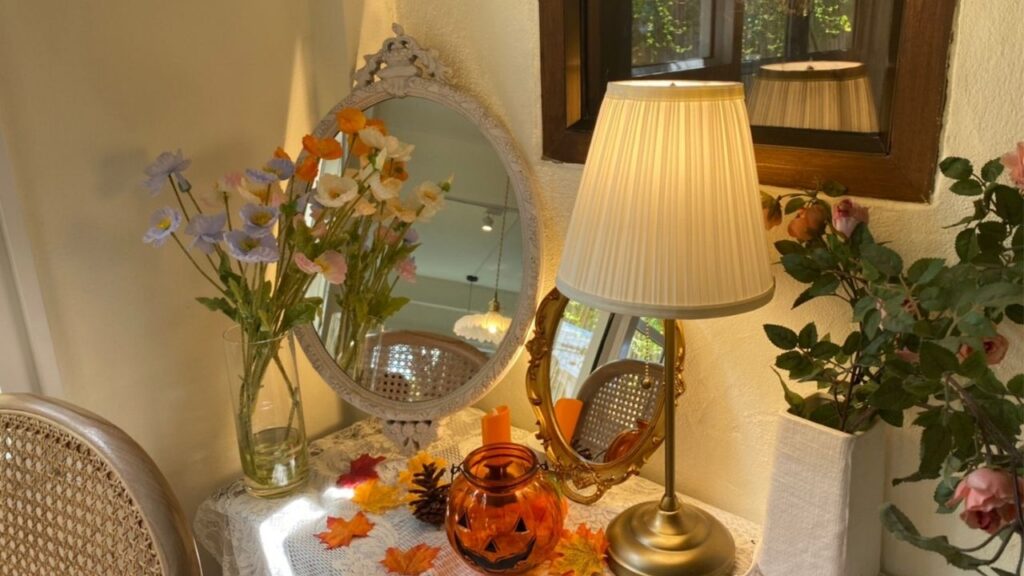 中庭が広くてフォトスポットも沢山ある!店内の装飾も素敵!カフェなのでケーキやコーヒーもある。