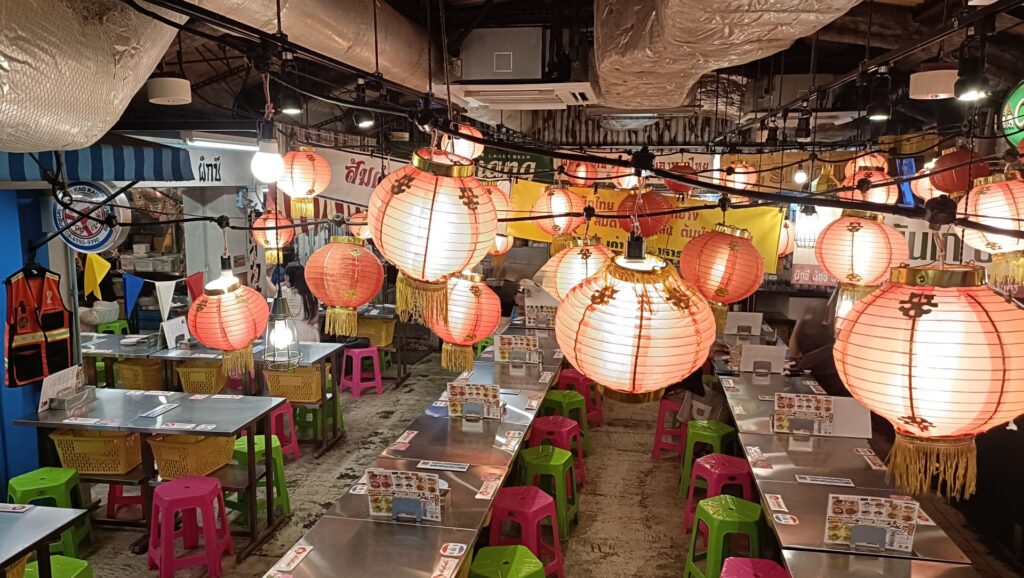 そして店内へ入ると「サワディーカーいらっしゃいませ!」と、キッチンの方から威勢の良い男たちの声!そしてこの胸キュン装飾。この日は早い時間にお店に駆け込みましたが、夜になると沢山の人で賑わうお店です。